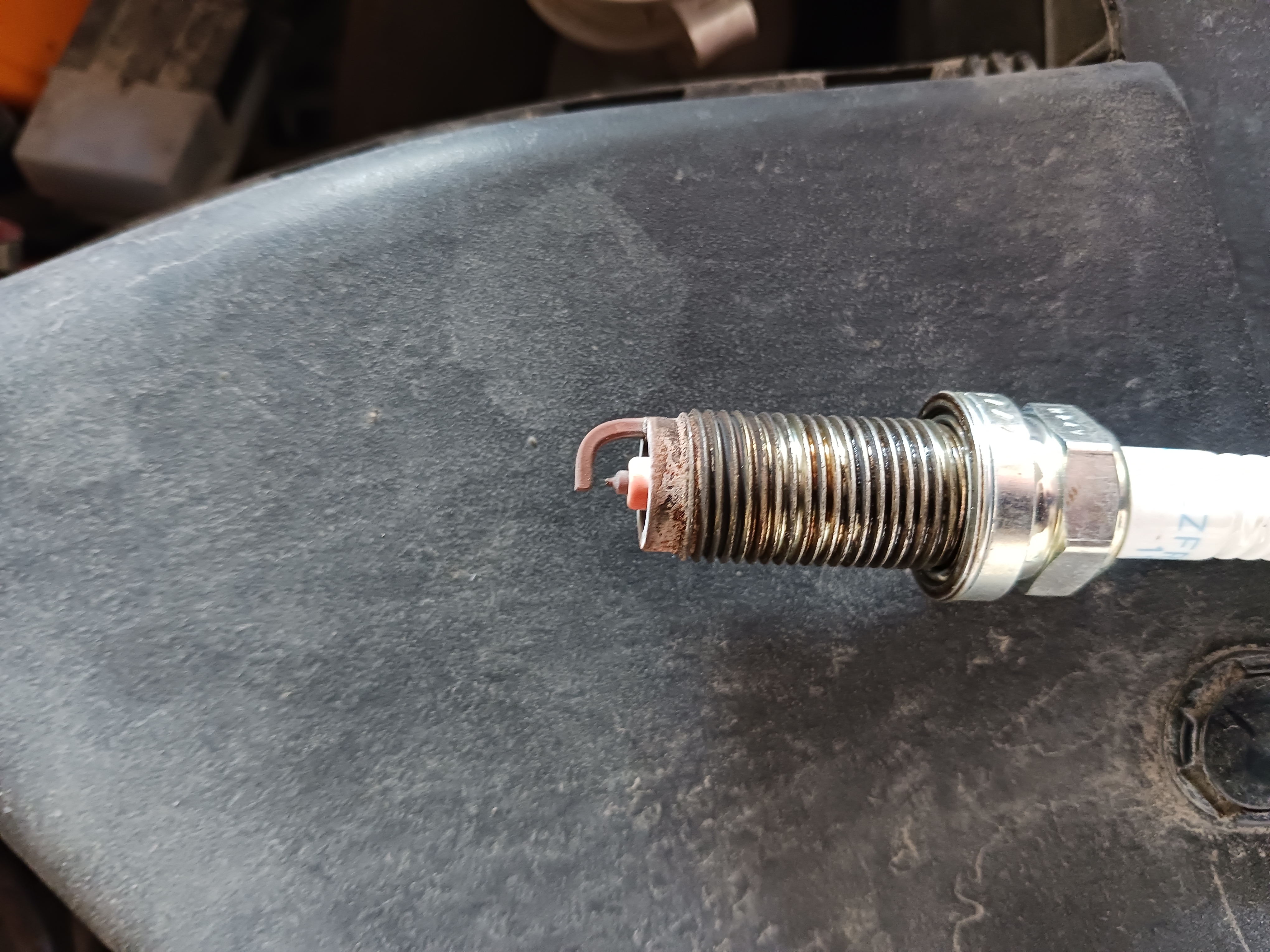 Ostatnio robiłem mały przegląd samochodu. Zauważyłem dziwne wybarwienie jednej ze świec. Pozostałe trzy wyglądają OK.